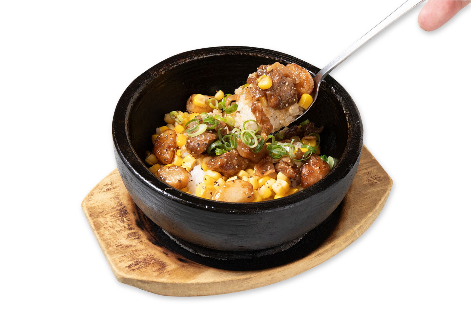 牛肉とニンニクがごろごろ入った、熱々のスタミナ飯です。