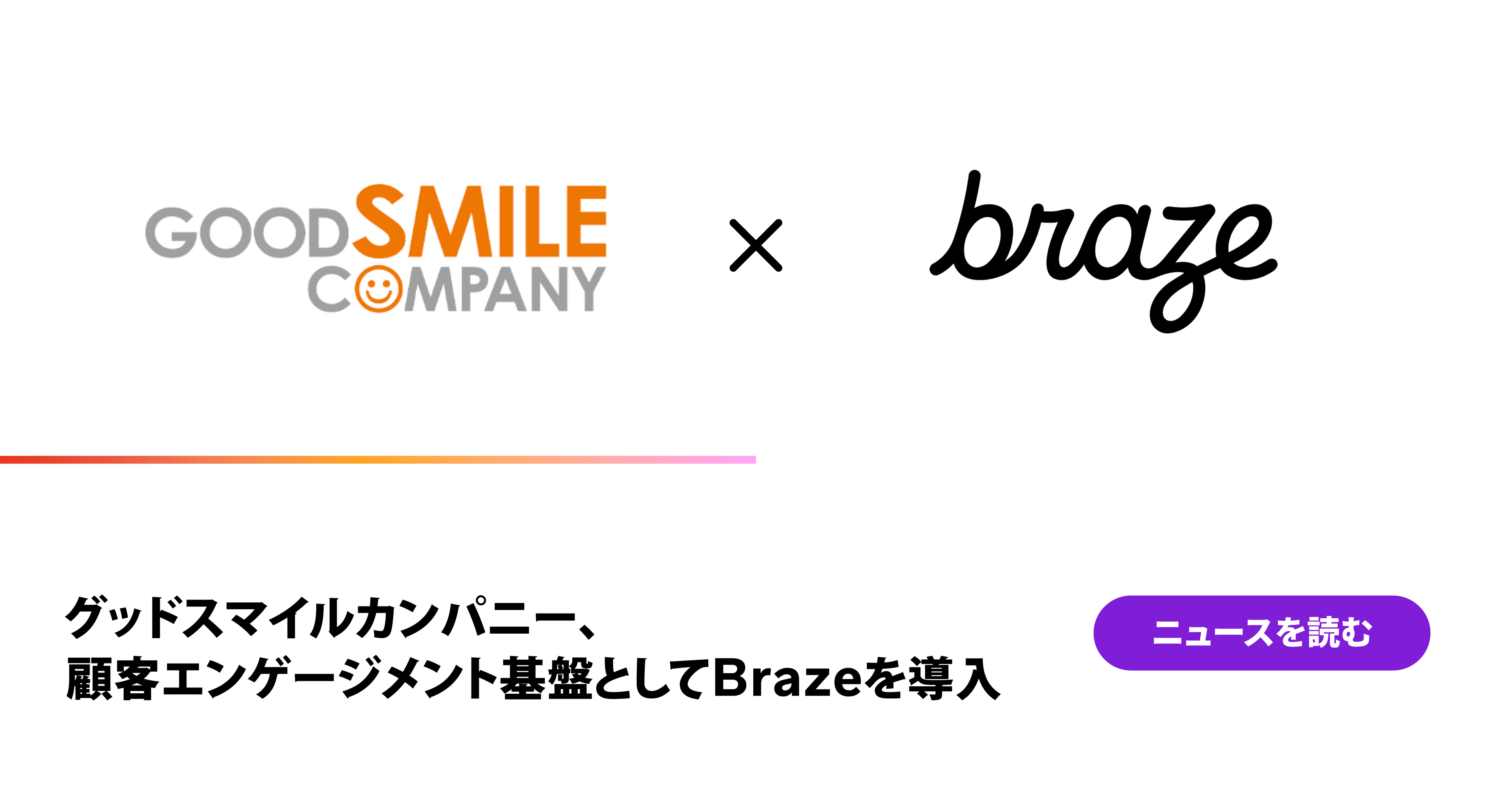 顧客エンゲージメントプラットフォームを提供するBraze株式会社(本社:東京都港区、代表取締役社長:水谷 篤尚、以下 Braze)は、フィギュアやアニメ関連商品を中心にグローバルで事業を展開する株式会社グッドスマイルカンパニー(本社:東京都千代田区、代表取締役会長:安藝 貴範、以下 グッドスマイルカンパニー)が、顧客体験向上と売上成長を目的にBrazeを導入したことを発表します。