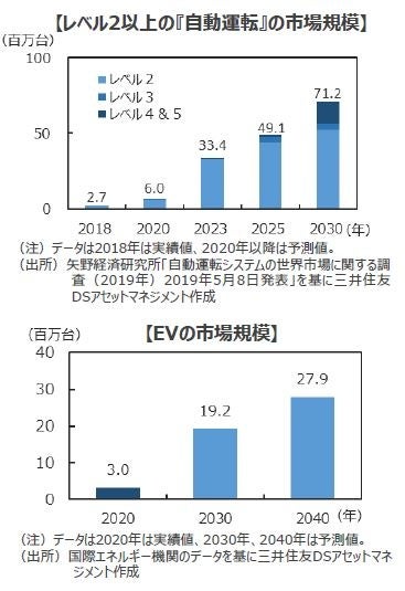 三井住友DSアセットマネジメント株式会社(代表取締役社長 兼 CEO:猿田隆)は、経済イベントや市場動向に関するマーケットレポートを日々発行しております。このたび、マーケットレポート「「EVシフト」と併走して加速する『自動運転』開発」を2022年1月20日に発行いたしましたので、お知らせいたします。