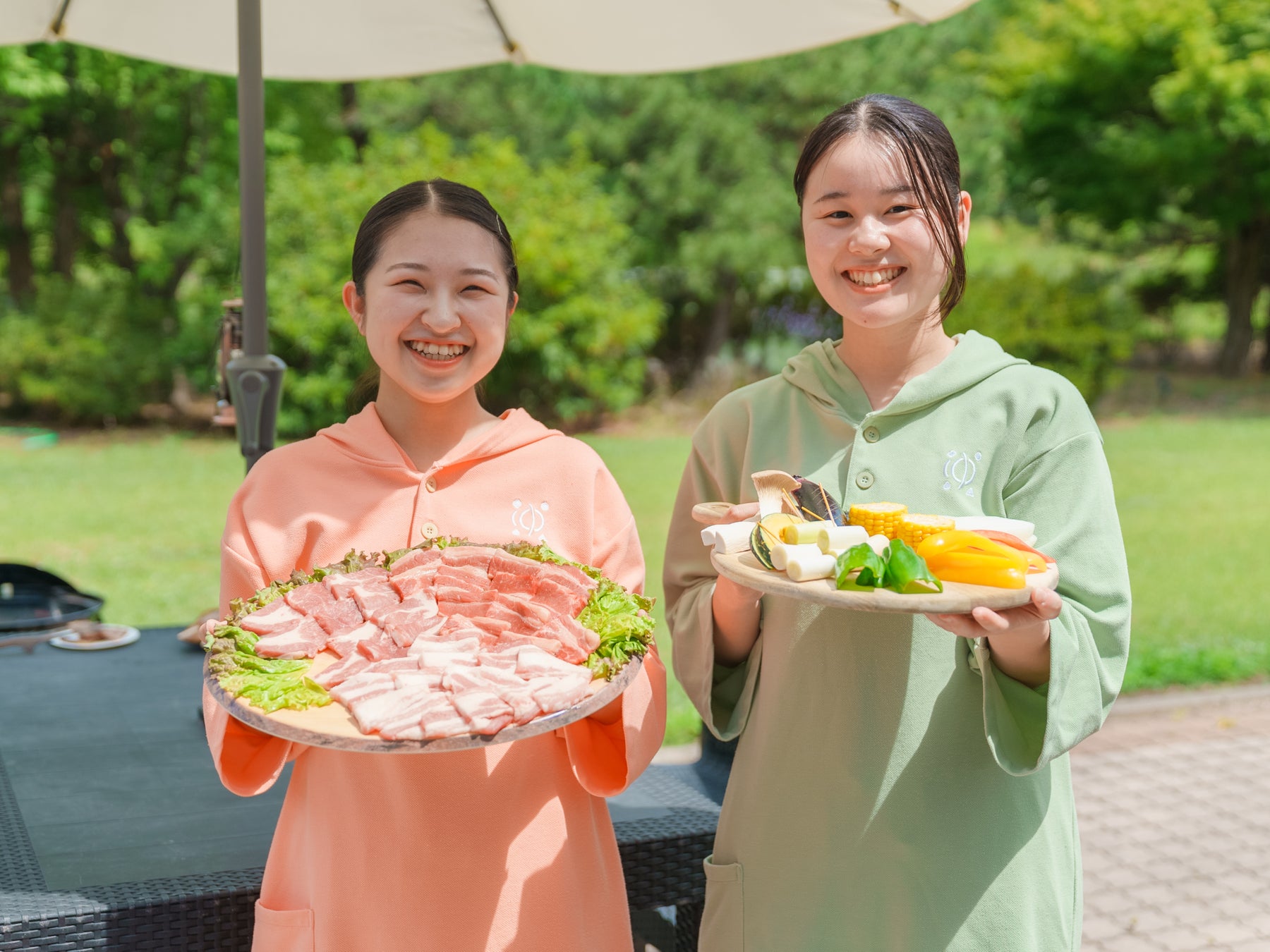 夏のてぶらBBQ体験:お肉やお野菜などの食べ物はもちろんのこと、BBQに必要な道具もご用意しておりますので、手ぶらでBBQを楽しめます!