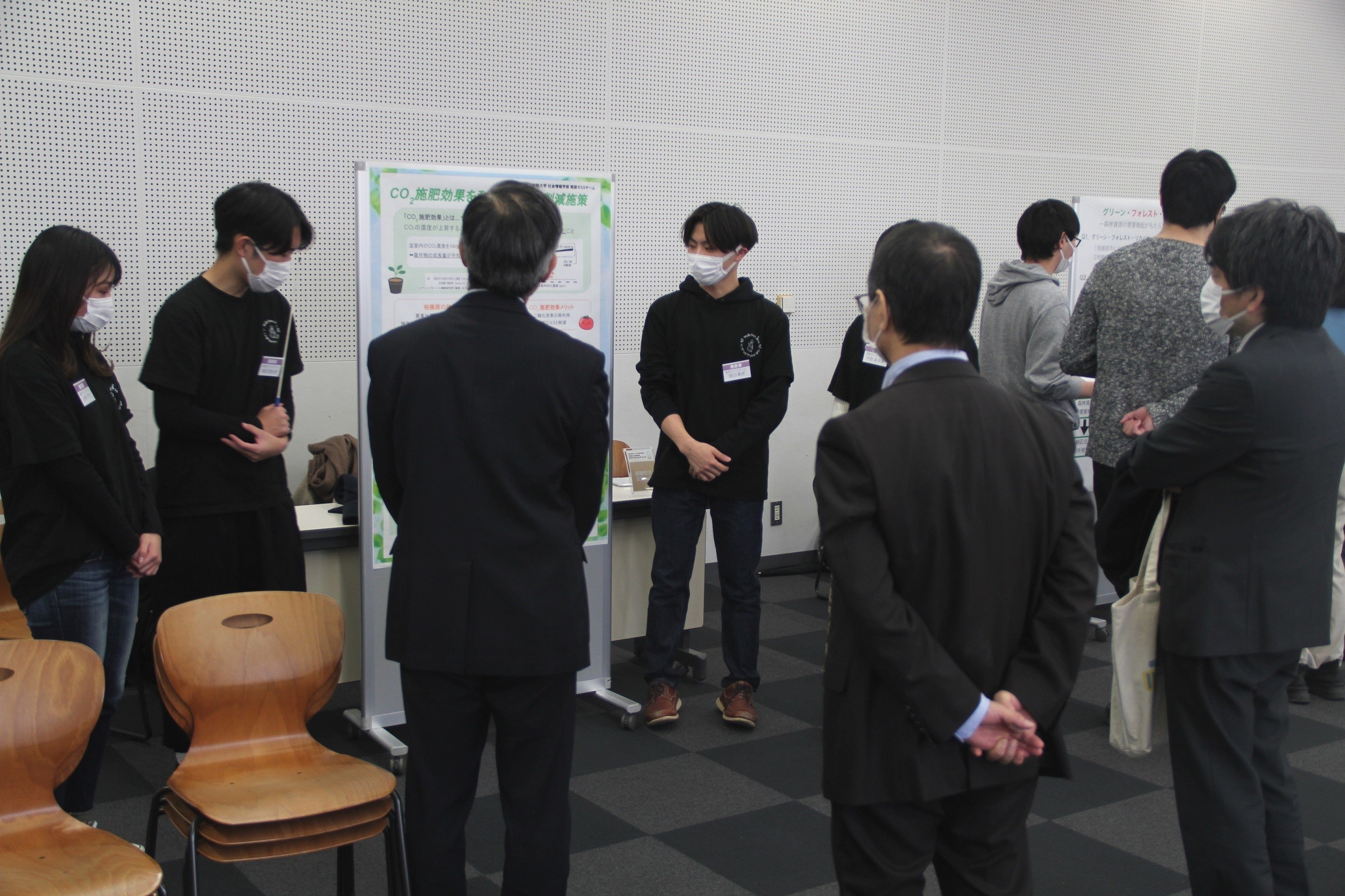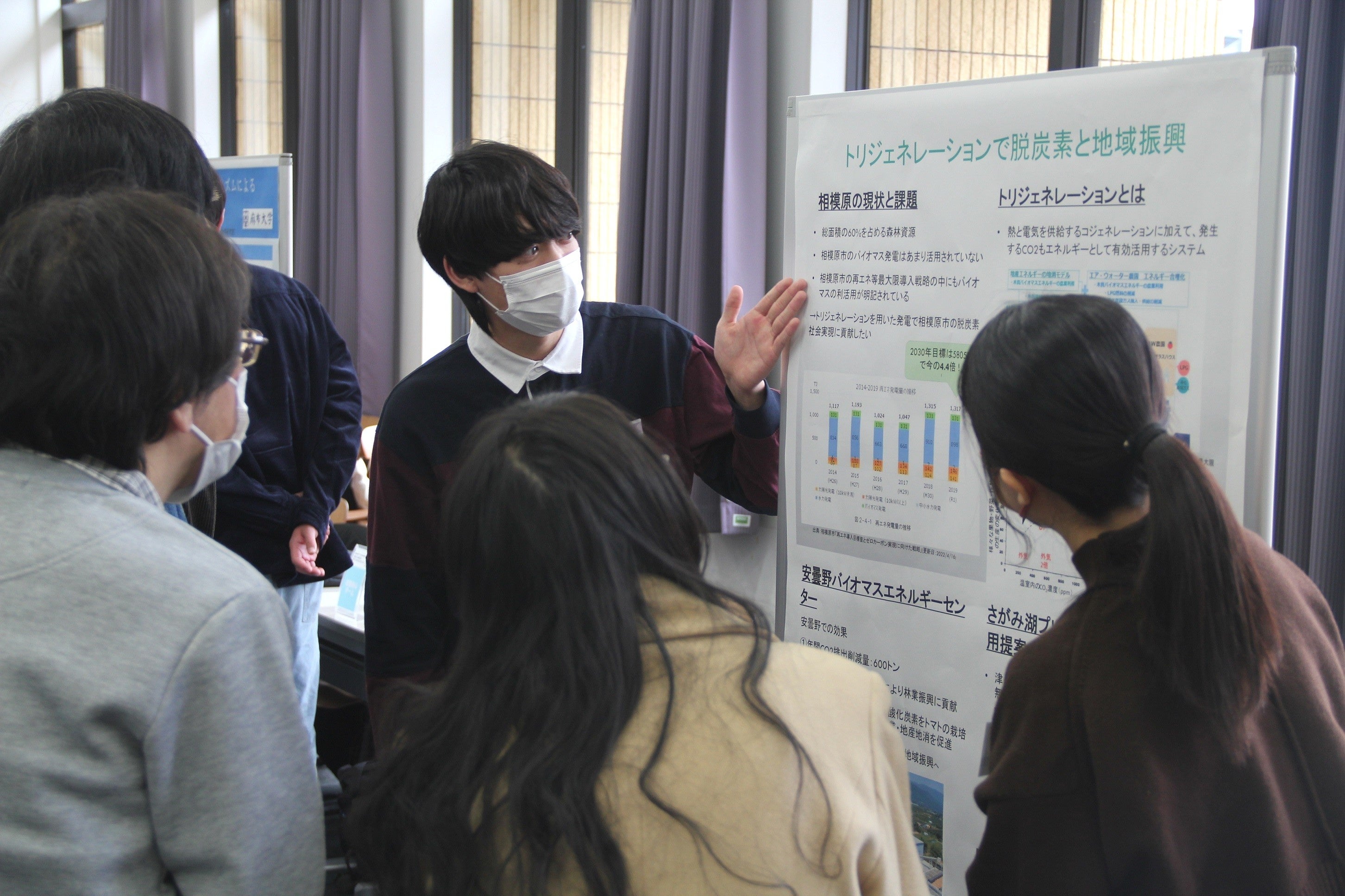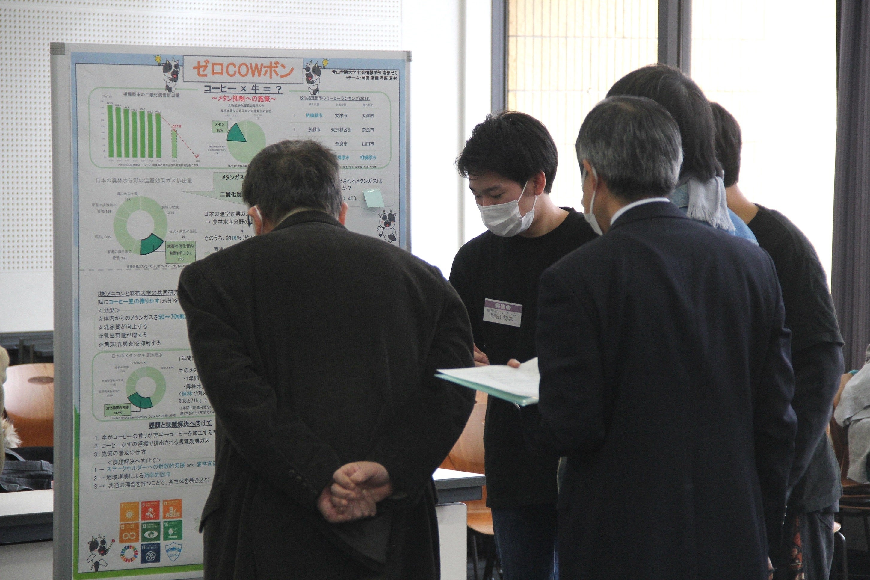 ポスターセッションには、青山学院大学、麻布大学、桜美林大学、国士舘大学の4大学より全9チームが参加し、牛のげっぷに含まれるメタンガスの削減や、「さがみはら津久井産材」の活用など、バラエティ豊かで充実した発表が行われました。