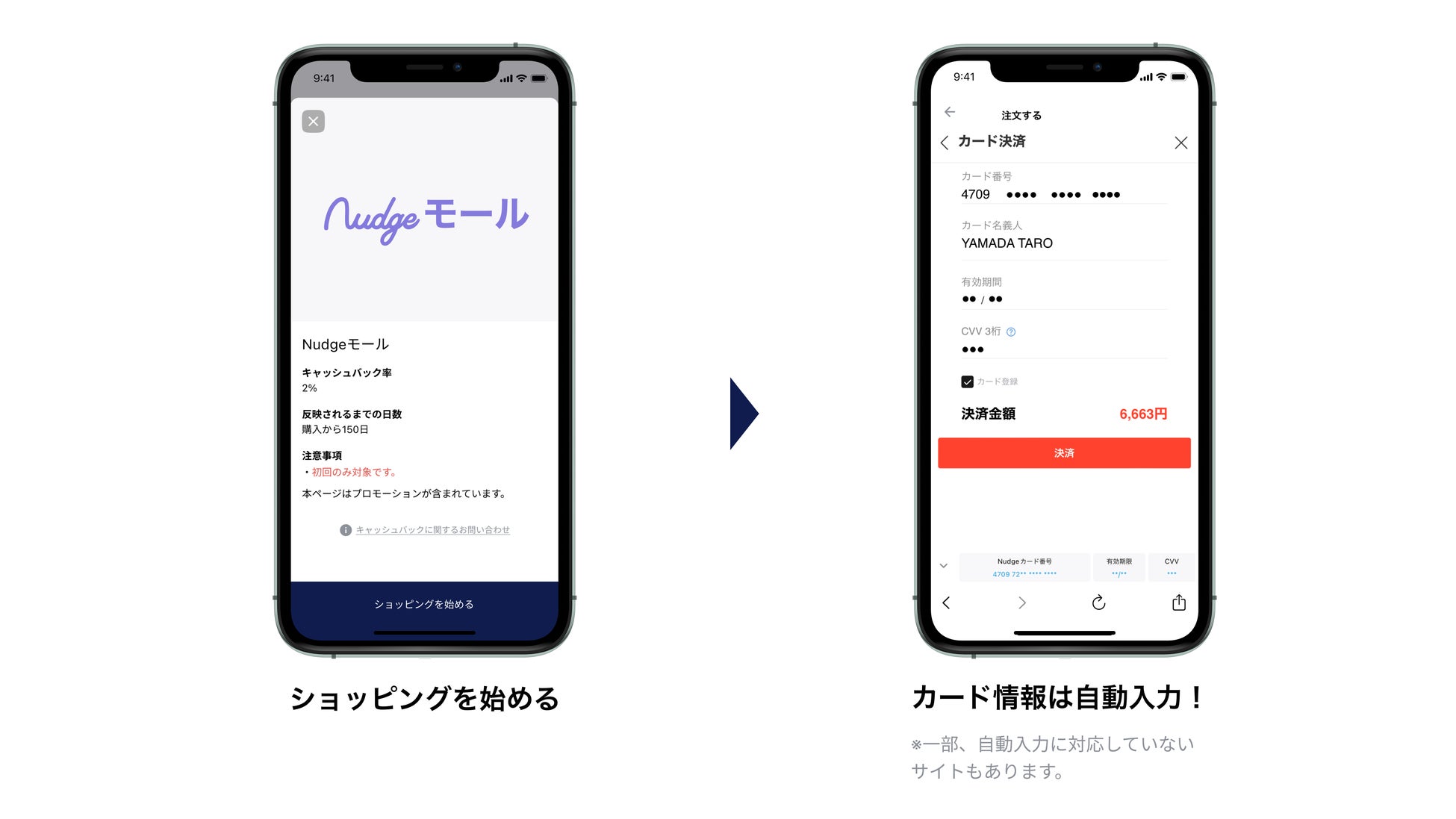 ユーザーは、ナッジカードのスマホアプリより「Nudgeモール」を開き、対象サービスのサイトにアクセスしてお買い物をするだけで、キャッシュバックサービスを受けられます。