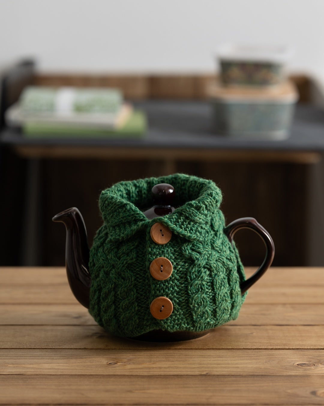 まるでポットがカーディガンを着ているような愛らしいデザイン。