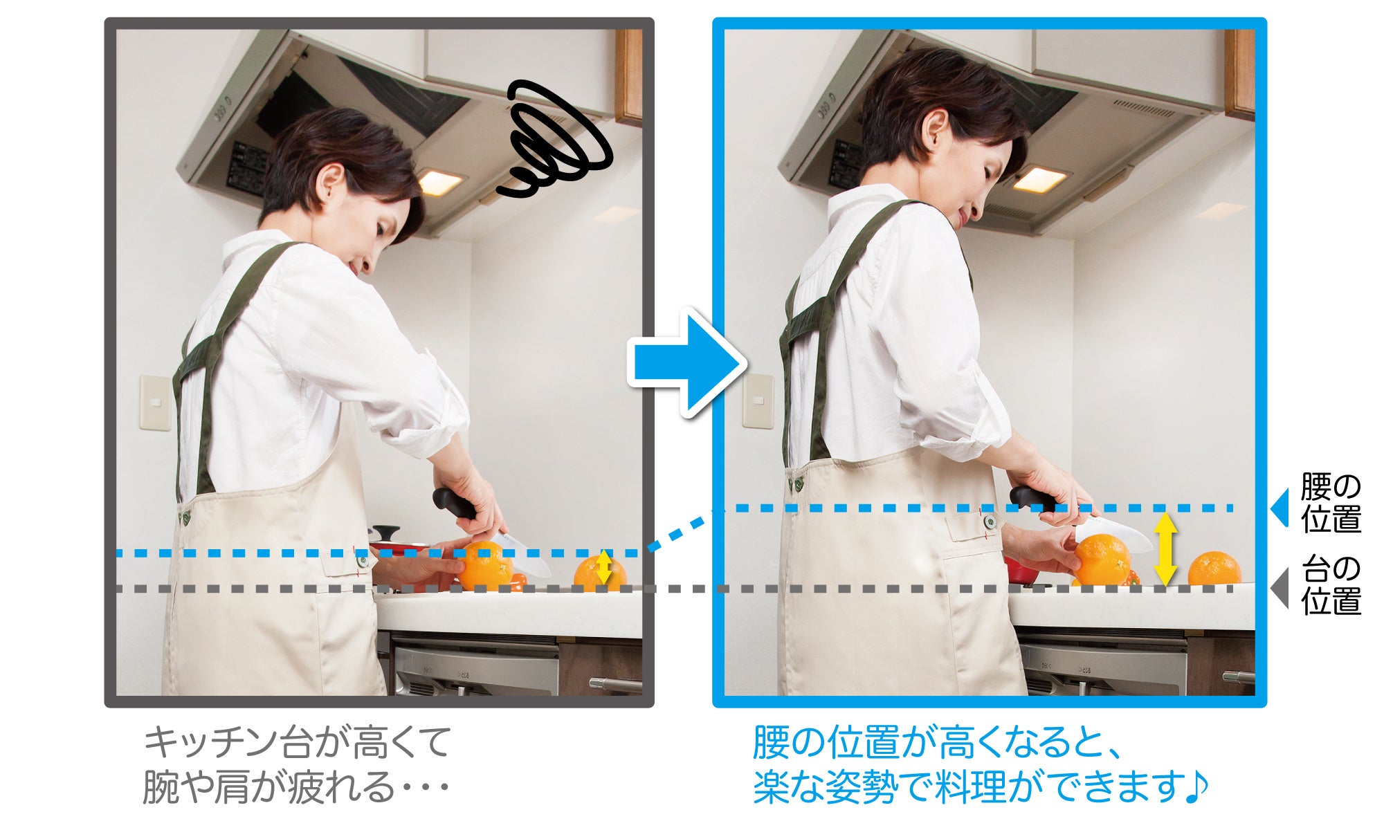 身長約6㎝アップで高いところに手が届く!台所仕事や掃除もらくらく快適!