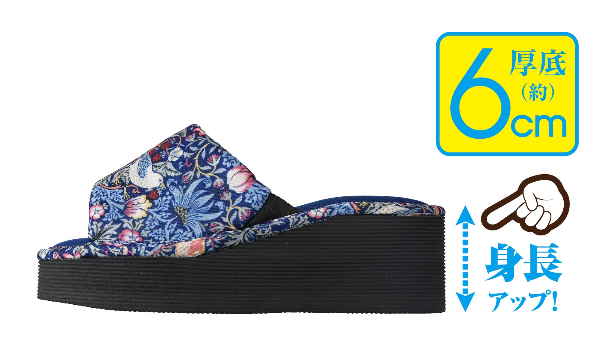 厚底なのにつま先上がりでつまずきを防止し、安心して歩けます。