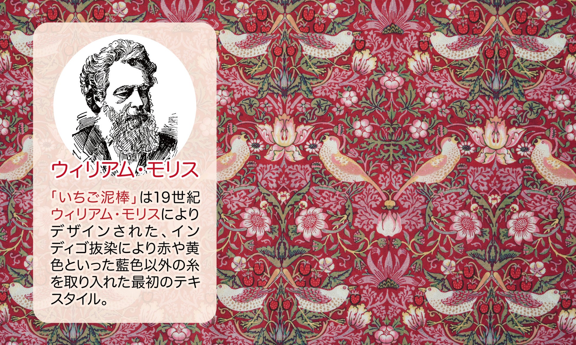 時代を超えて愛されるウィリアム・モリスの「いちご泥棒」を全面にあしらったデザイン