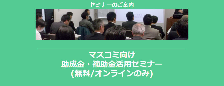 マスコミ向け助成金・補助金活用セミナー配信開始