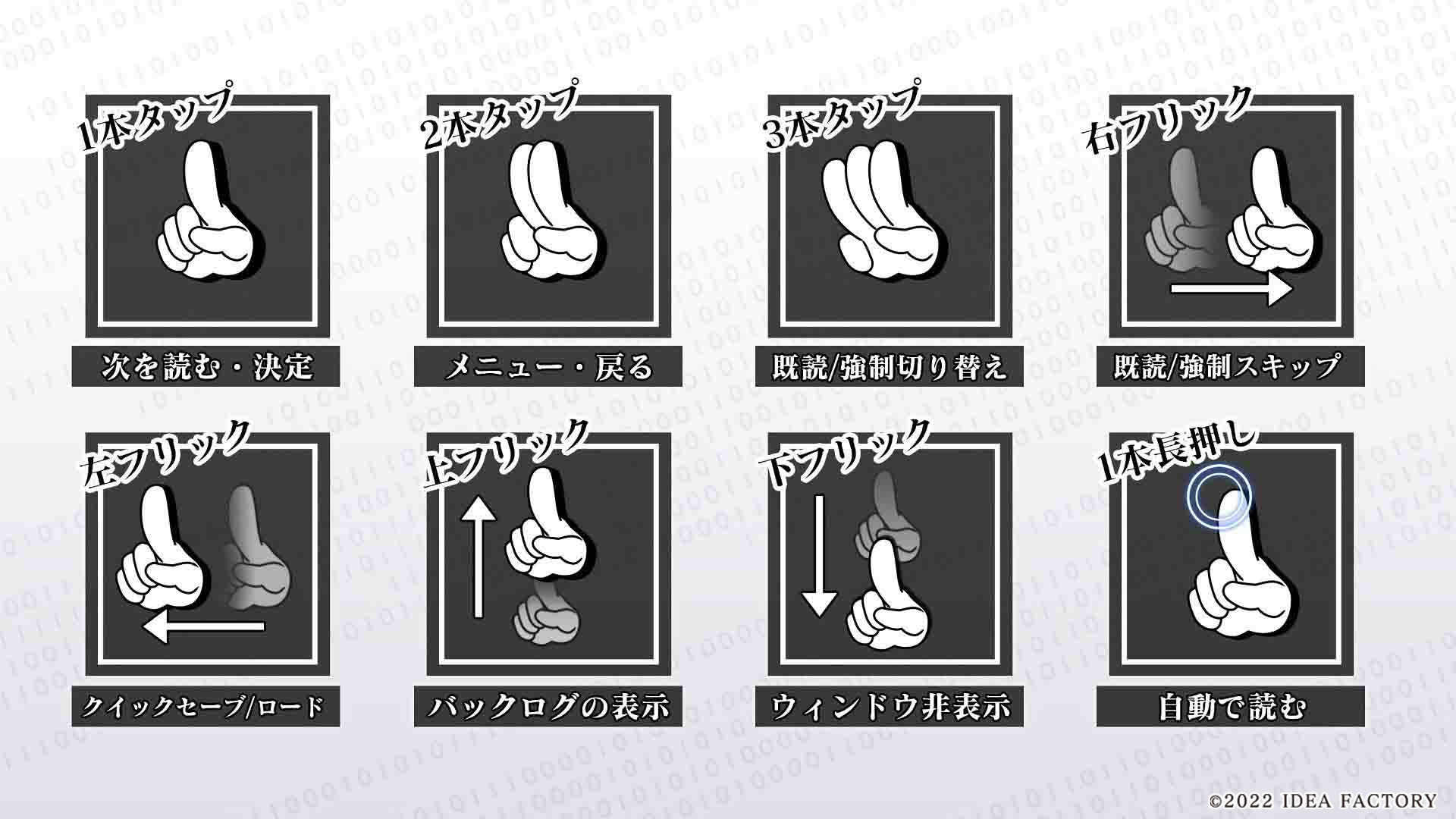 クイックセーブ、クイックロード、バックログ、既読スキップ、未読スキップ、オートモードなど快適にプレイできるシステムを搭載しています。