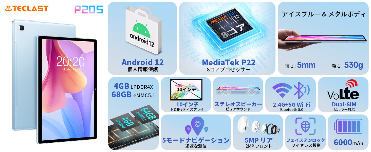 7000mAhのバッテリーが搭載されています。 18W USB-PD急速充電をサポートしているため、大体4時間で満充電になる可能です。8GBの大容量LPDDR4メモリと128GBの高速ストレージを搭載し、豊富な動画、電子書籍などをダウンロードできます。さらに、お手持ちのMicroSD(TF)カードを挿入すれば最大512GB容量を拡張可能、さまざまなコンテンツやエンターテイメントをお楽しみいただけます。