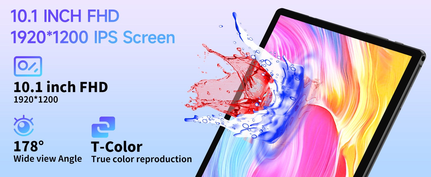 10.1インチのIPS広視野角ディスプレイを搭載し、1280x800のHD解像度により、複数の人が同時に動画を見ても素晴らしい視覚体験ができます。さらに16:10の黄金比の画面で、より快適な動画鑑賞体験が得られます。横画面で動画を楽しむ場合に特化して最適化したプアサウンド・システムは、より優れた立体音響効果を提供します。響く高音とド迫力の低音で、大音量で鮮明なサウンドを実現します。