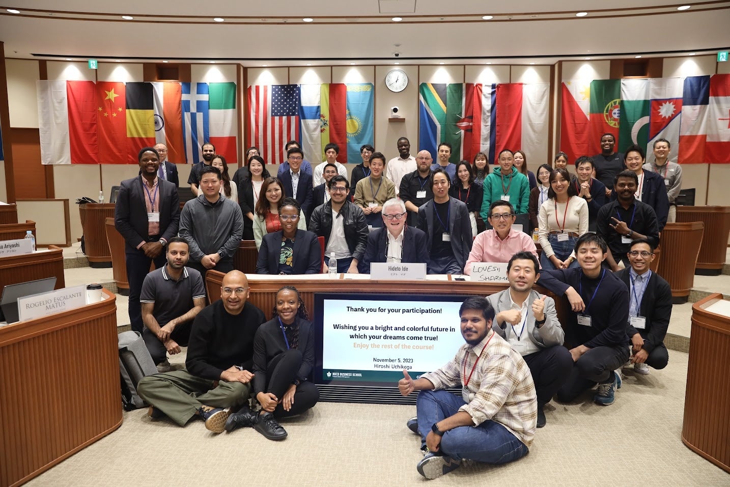 初共催の本講座には日本人21名、外国人14カ国20名の計41名が参加、本講座開講の趣旨である、本学のMBA流ケースメソッドを用い、多国籍参加者と共に学び、対話や意見交換をしながらリーダーとしての知見や発想を磨くプログラムとしてスタートできたました。異なるバックグラウンドを持つ参加者たちが共同で取り組むことで、新しいビジネスの課題に対する革新的な解決策を見つけ出すプロセスが生まれることでしょう。