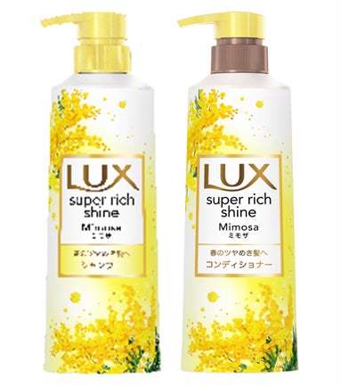 ラックス スーパーリッチシャインは、ダメージ・パサつき・うねり・ツヤのなさといった、髪の悩みのそれぞれに丁寧にアプローチすることができる、ラックスの中でも基幹となる商品です。ミモザシリーズでは、シルク・エッセンス※1(保湿成分)配合で冬からの乾燥髪にうるおいを与え、瞬間浸透モイスト処方により朝からずっと輝くツヤめき髪へ導きます。