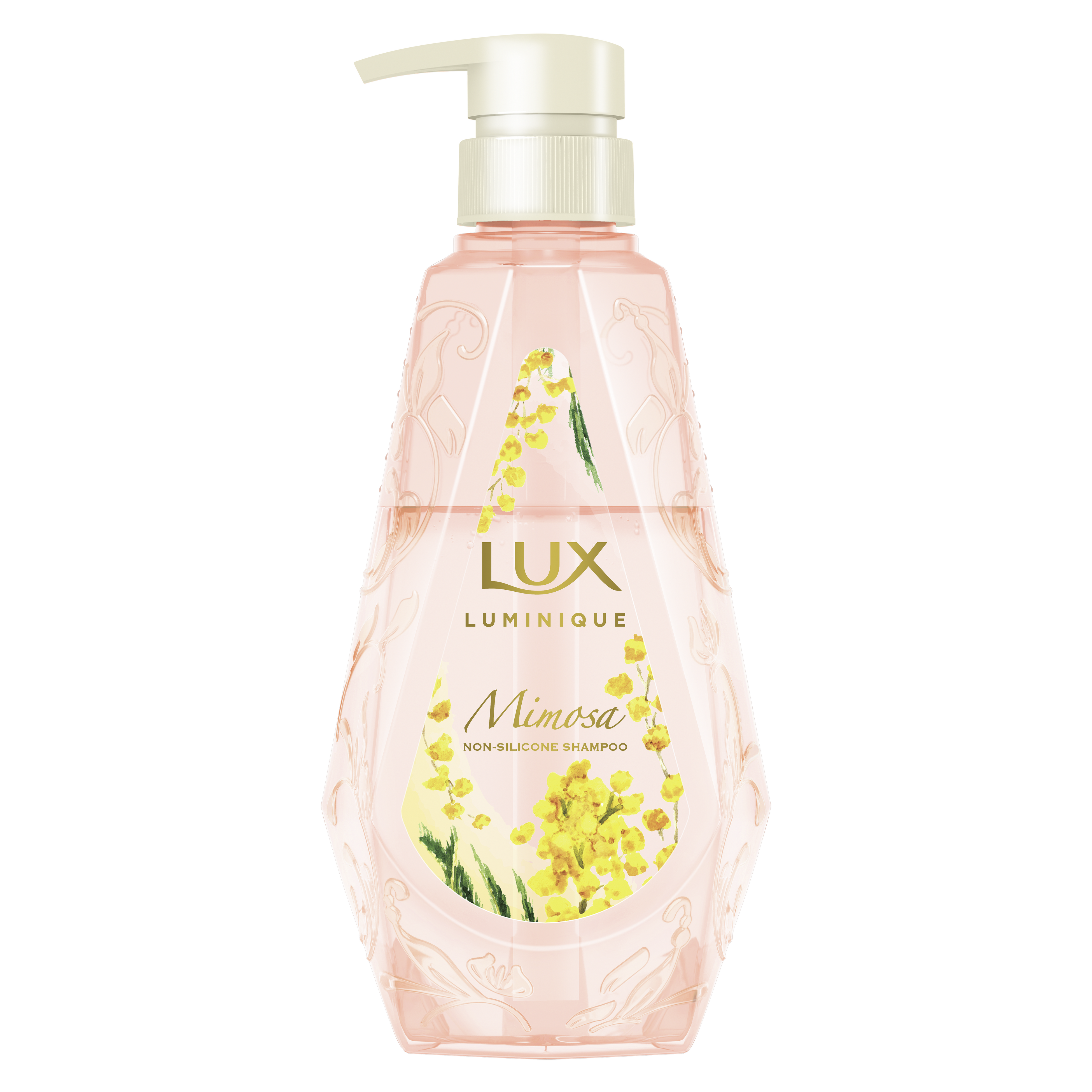 ラックス ルミニークは、毎日忙しい生活の中でバスタイムを贅沢な時間にしたいと考えている女性に向けた、きしまないノンシリコンシャンプーシリーズ※4です。ミモザシリーズでは、100%エッセンシャルオイルとフローラルセラム成分配合でパサつきをケアし、ミモザ香るうるツヤ髪へ導きます。
