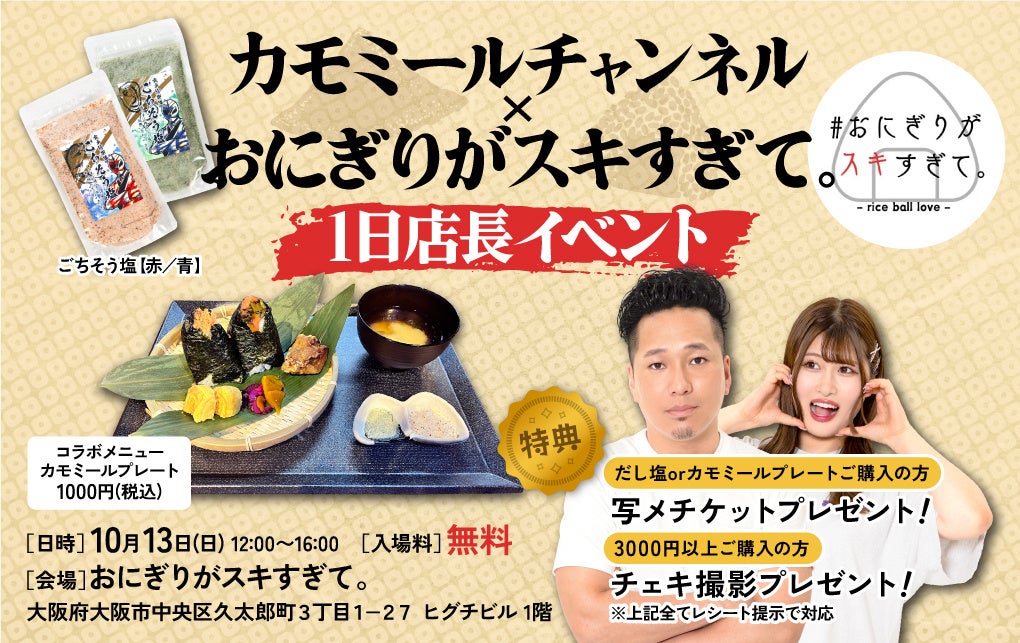【カモミールチャンネル×おにぎりがスキすぎて。初のコラボおむすび】『カモミールプレート』を10月13日(日)限定で販売いたします!