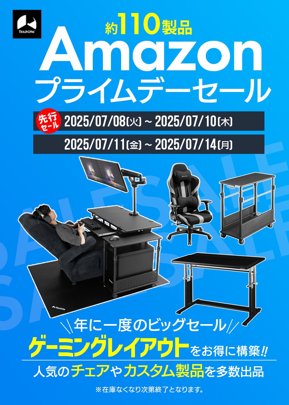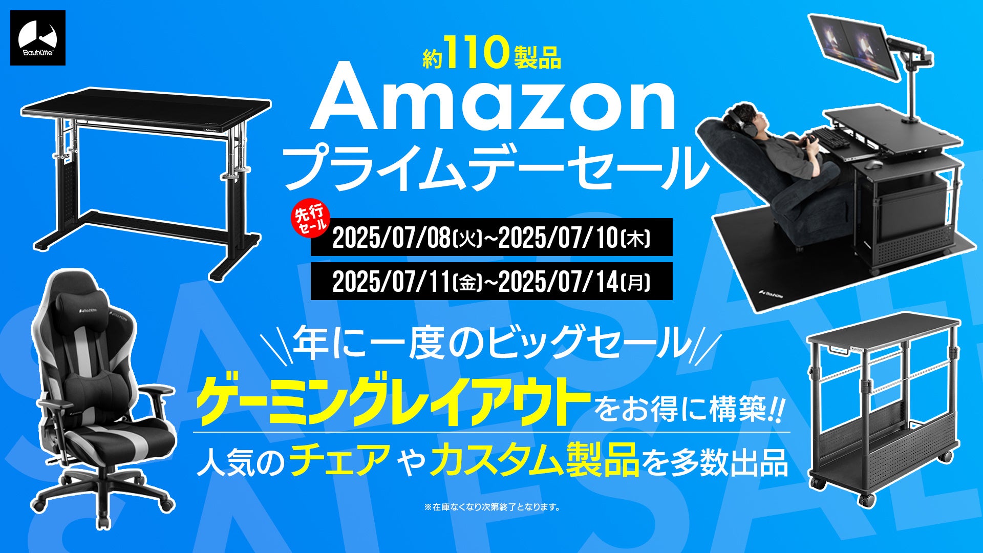 弊社ゲーミング家具ブランド「Bauhutte(R)(バウヒュッテ)」は、2025年7月8日(月)から7月10日(木)まで開催される「プライムデー先行セール」および、7月11日(金)から7月14日(月)まで開催される「Amazonプライムデー」において、バウヒュッテの定番&人気ゲーミング家具類を最大30%OFFの特別価格で出品いたします。