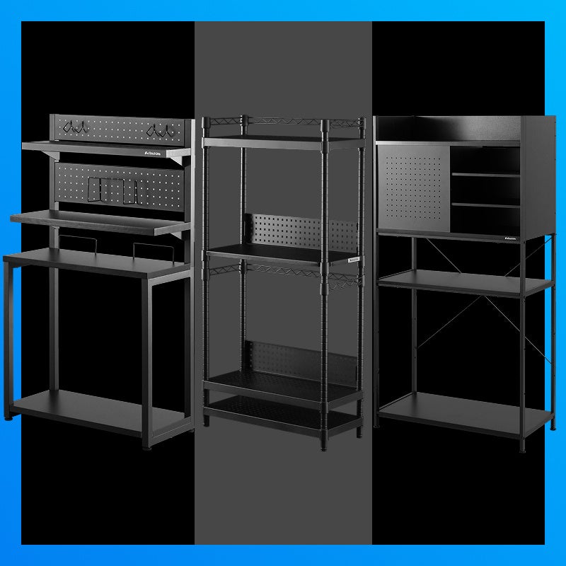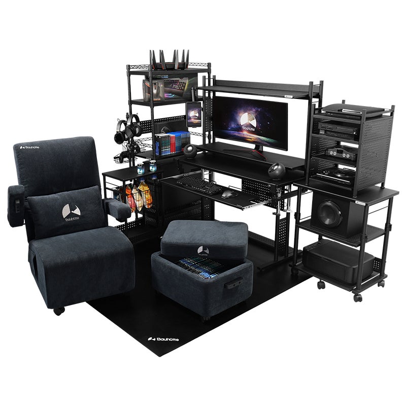 最大収納力を誇るゲーム要塞。デスク周りをラックで囲い、座ったままサッと手が届くチェアの半径1m以内にあらゆるものを集約できます。多彩なデバイスを使いこなす上級ゲーマーや収集家におすすめ。