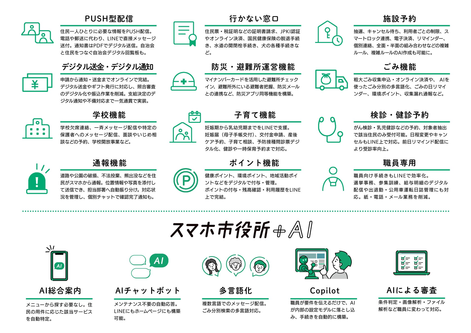 AIチャットボットやAIごみ写真判別機能を実装し、住民の質問に即時対応。
