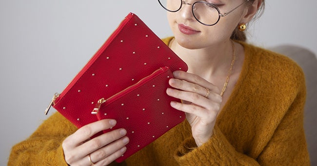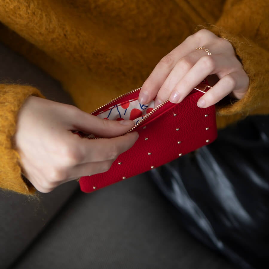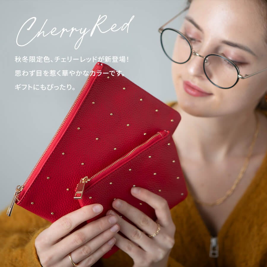 【A/W限定カラー新登場】便利なポーチはレザー素材で大人っぽく。人気のレザーポーチに艶やかに心華やぐ新色、チェリーレッドが新発売!