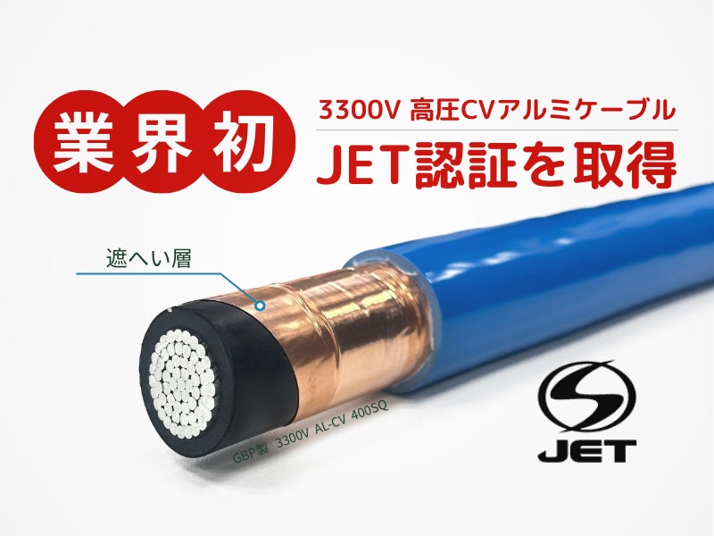 GBPが提供する高圧直流蓄電システム用アルミケーブルは、厳格な試験・審査を経てJET認証を取得(2025年4月1日付)した業界初の認証製品です。第三者機関により品質と安全性が確認されており、3300V高圧アルミケーブルは1年間で累計販売20万メートルを突破(2025年11月時点)。数多くの現場で採用され、安定した品質で高い評価をいただいています。