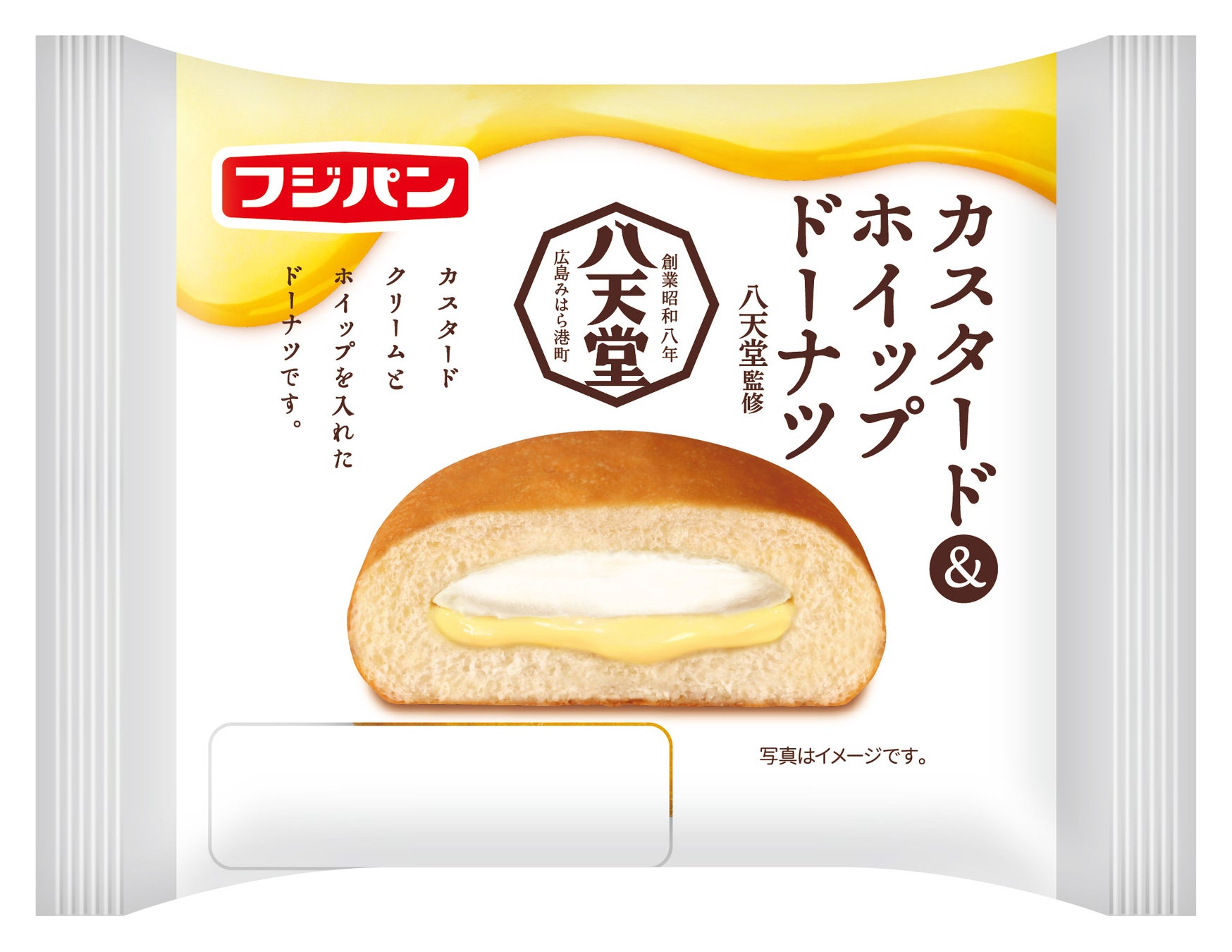 今回は、フジパンの新商品2品で監修が実現しました。八天堂の代名詞である「やさしいくちどけのカスタード」を再現し、なめらかなカスタードがくせになる「ドーナツ」と「スナックサンド」として商品化いたしました。八天堂ファンの皆様にもご満足いただける、新商品をぜひお試しください。