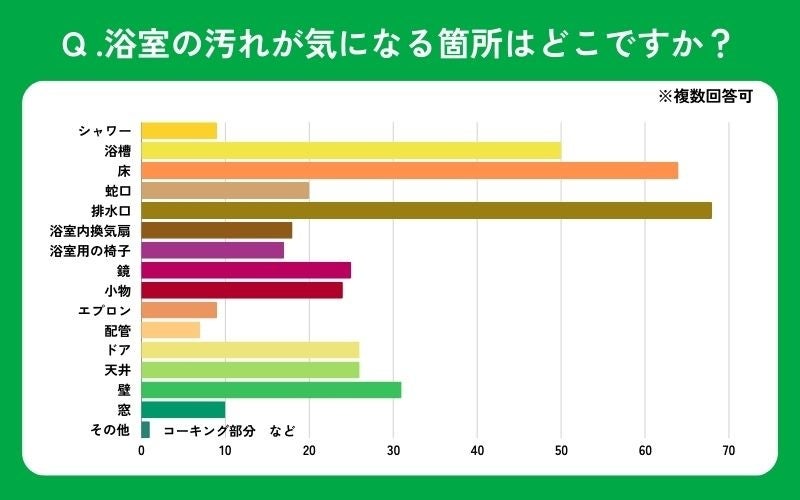 浴室で汚れが気になる箇所はどこですか?(複数回答可能)