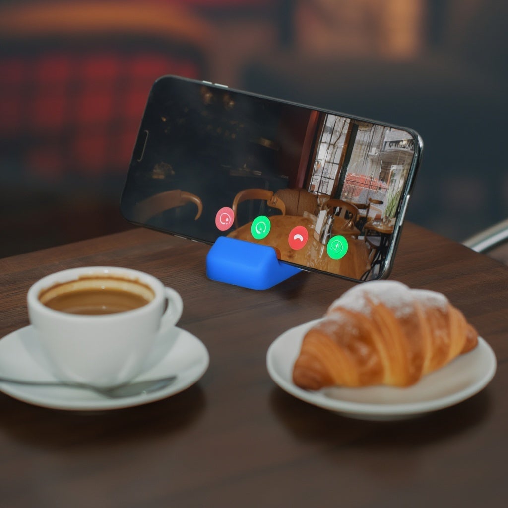 ブロックのおもちゃに見えるキーホルダーは、スマホを置いて動画を視聴する時に役立ちます。