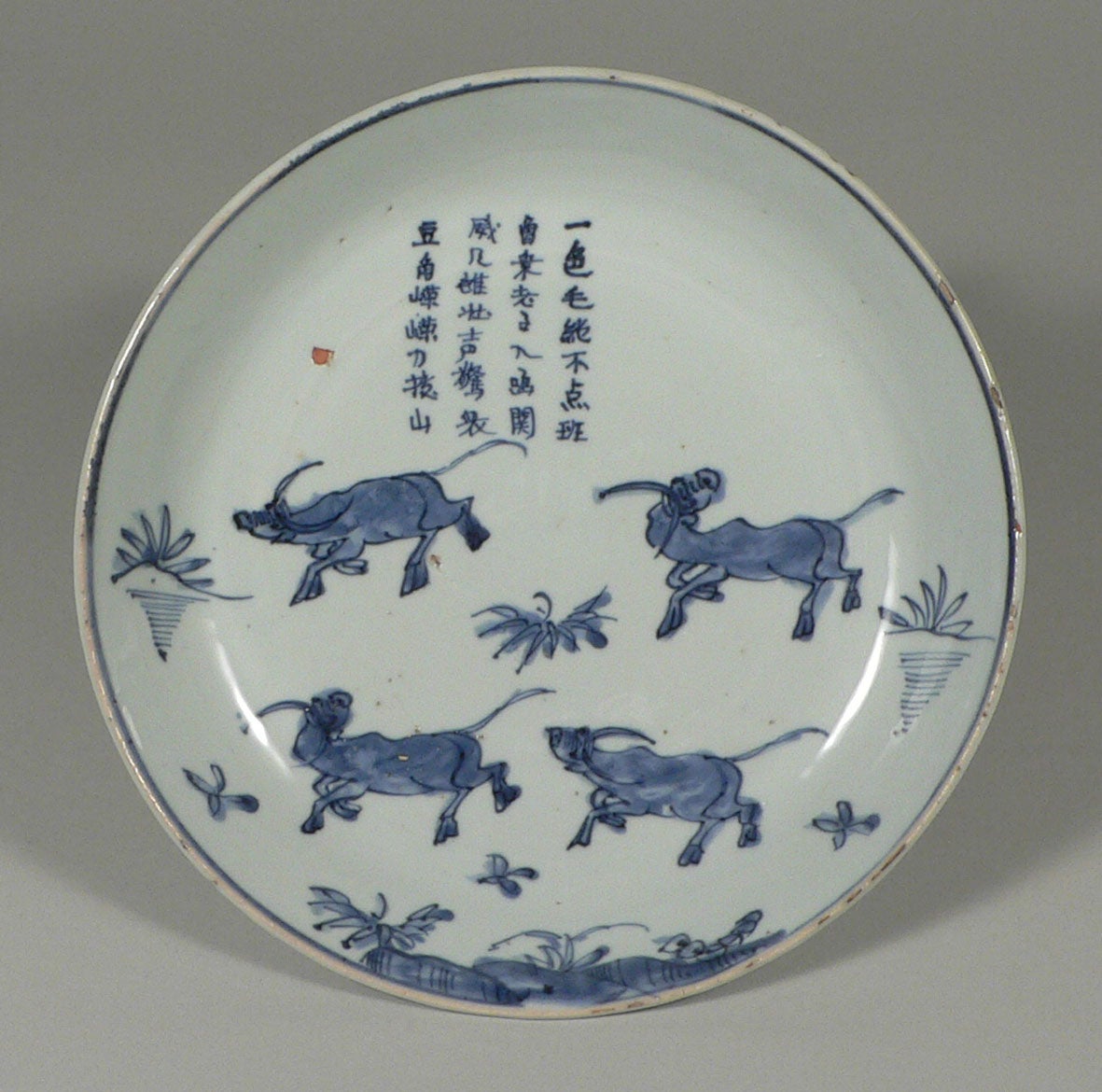 青花牧牛図皿(古染付)(せいかぼくぎゅうずさら こそめつけ)