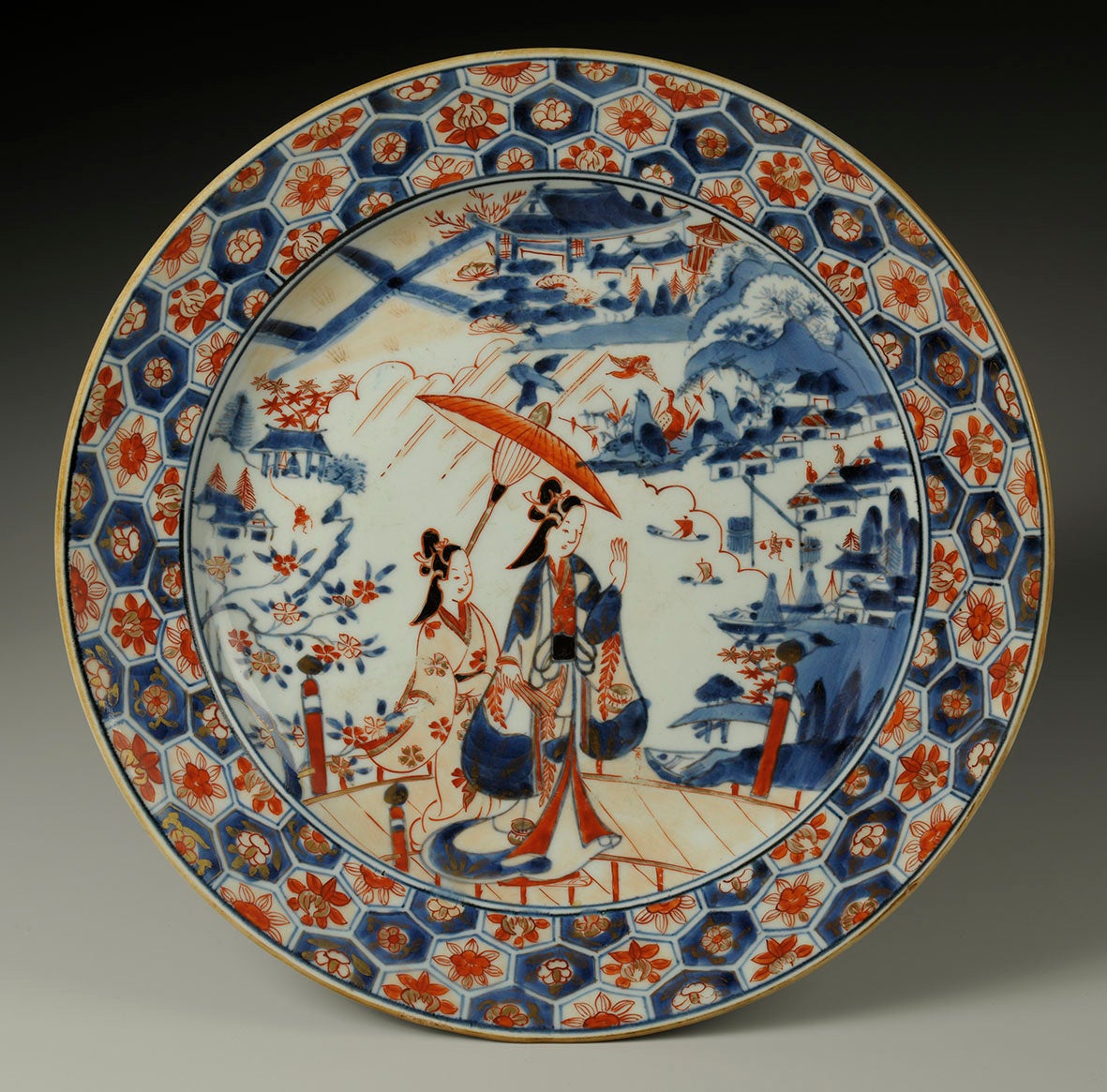 色絵傘美人文皿(いろえかさびじんもんさら)