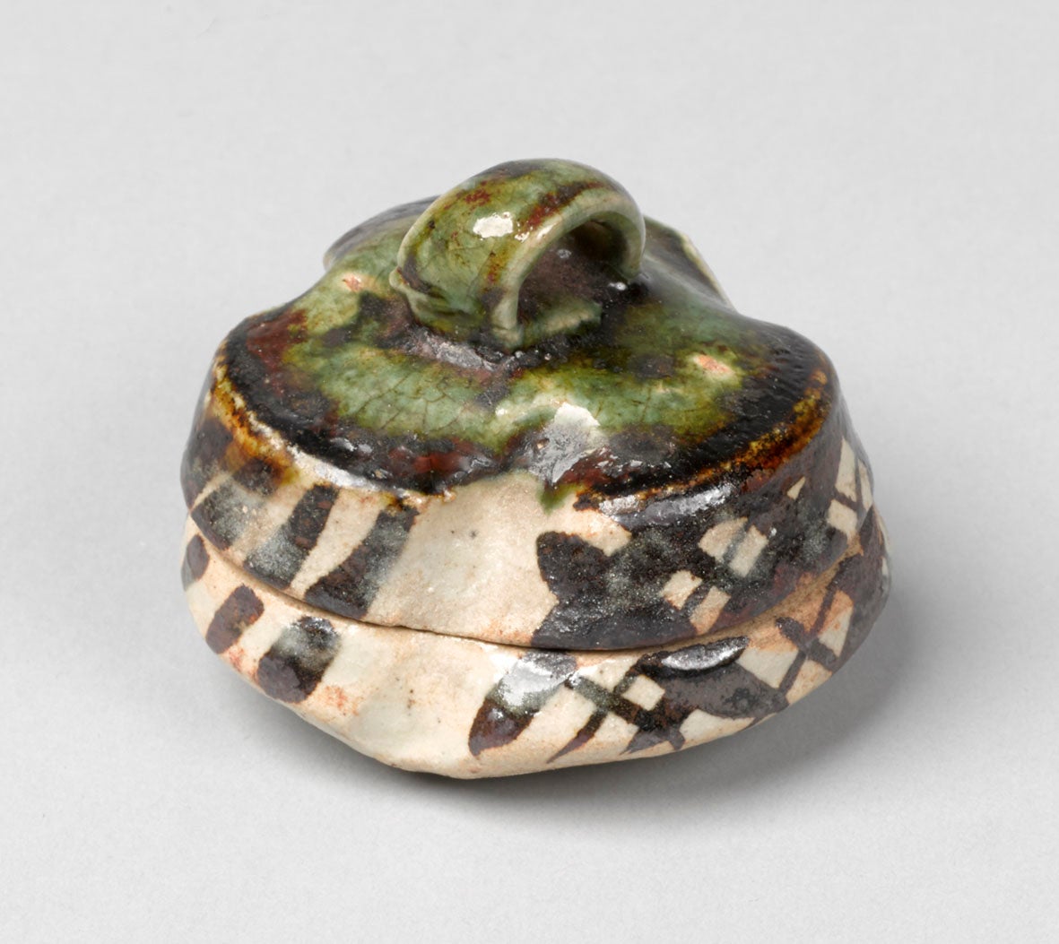 織部弾香合(おりべはじきこうごう)