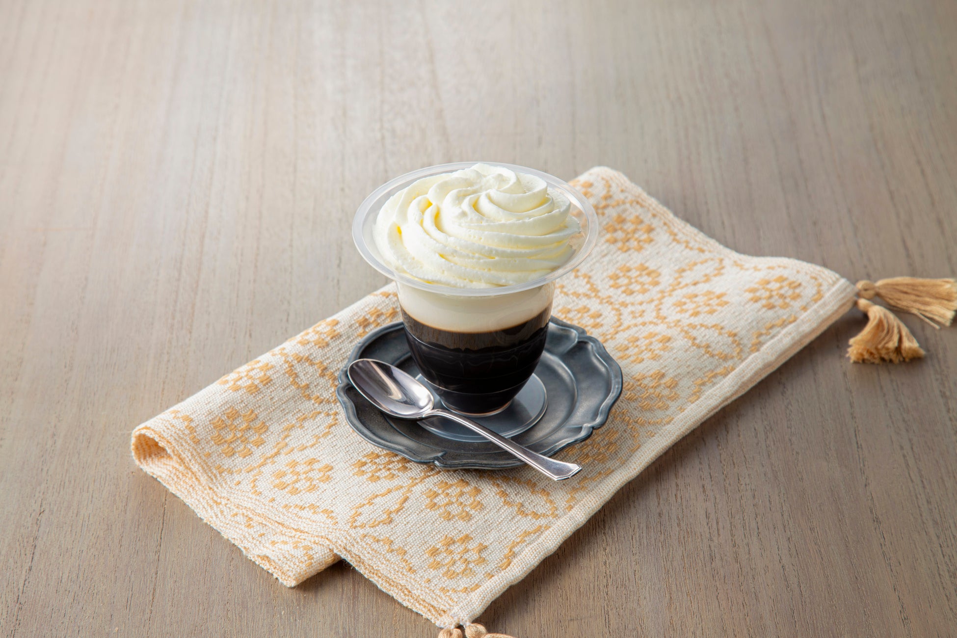 喫茶店文化が根付いた東海エリアのお客様に好まれるホイップをたっぷり乗せた珈琲ゼリーに仕立てました。深みのあるキリマンジャロ豆のゼリーに、ふんわりホイップをトッピングしました。食後のデザートにもぴったりです。