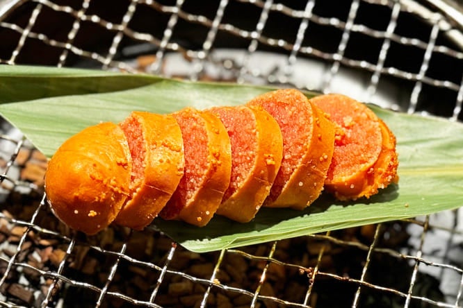 対照的な2銘柄には、ピリッとした辛味と旨みのある燻製明太子を。