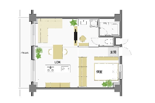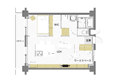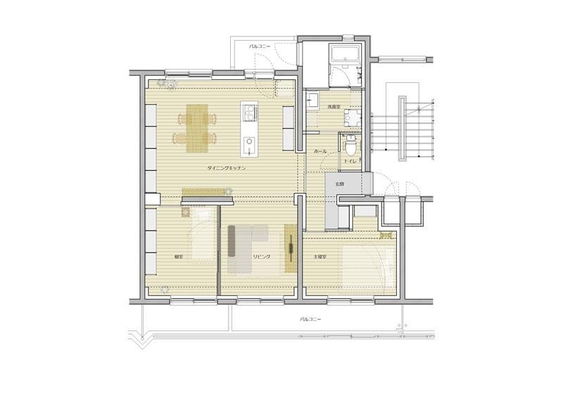 専用部(住戸)内は、住む人が引戸や無印良品の家具を用いて、暮らしや家族構成の変化に合わせて自由に空間を仕切ることが可能な、可変性の高いデザインを採用しています。