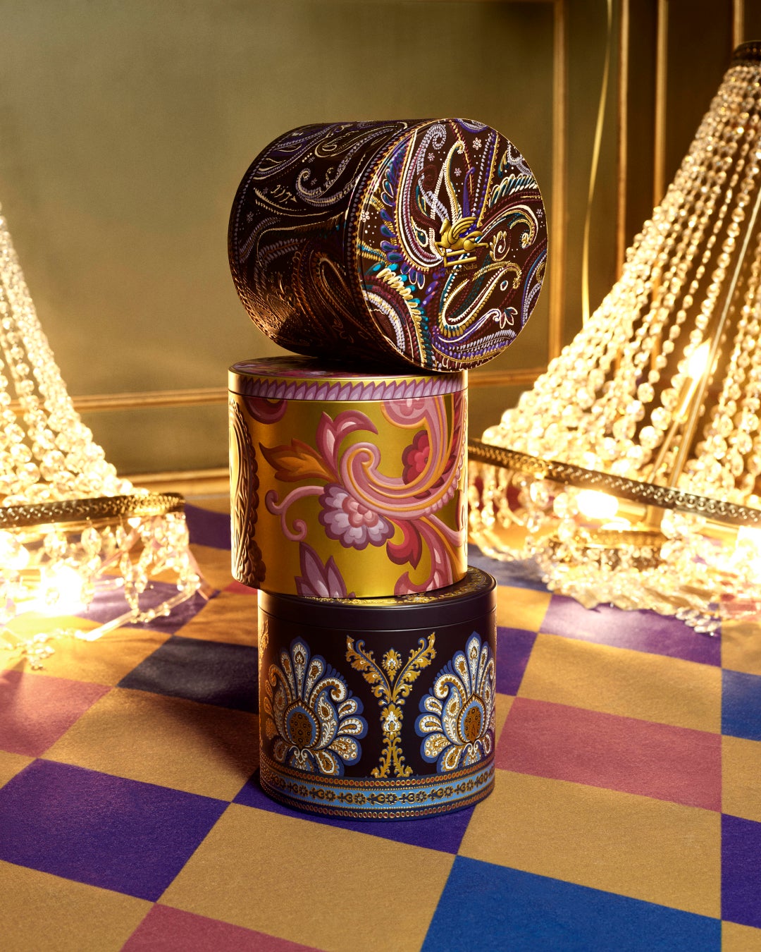 その他、毎年人気の日本限定クリスマスショールや、ミシュランの星をもつアイモ・エ・ナディア ミラノとのパートナーシップによるイタリアの伝統的なパネットーネやパンドーロなど、エトロの心躍る多彩なギフトアイテムが揃います。