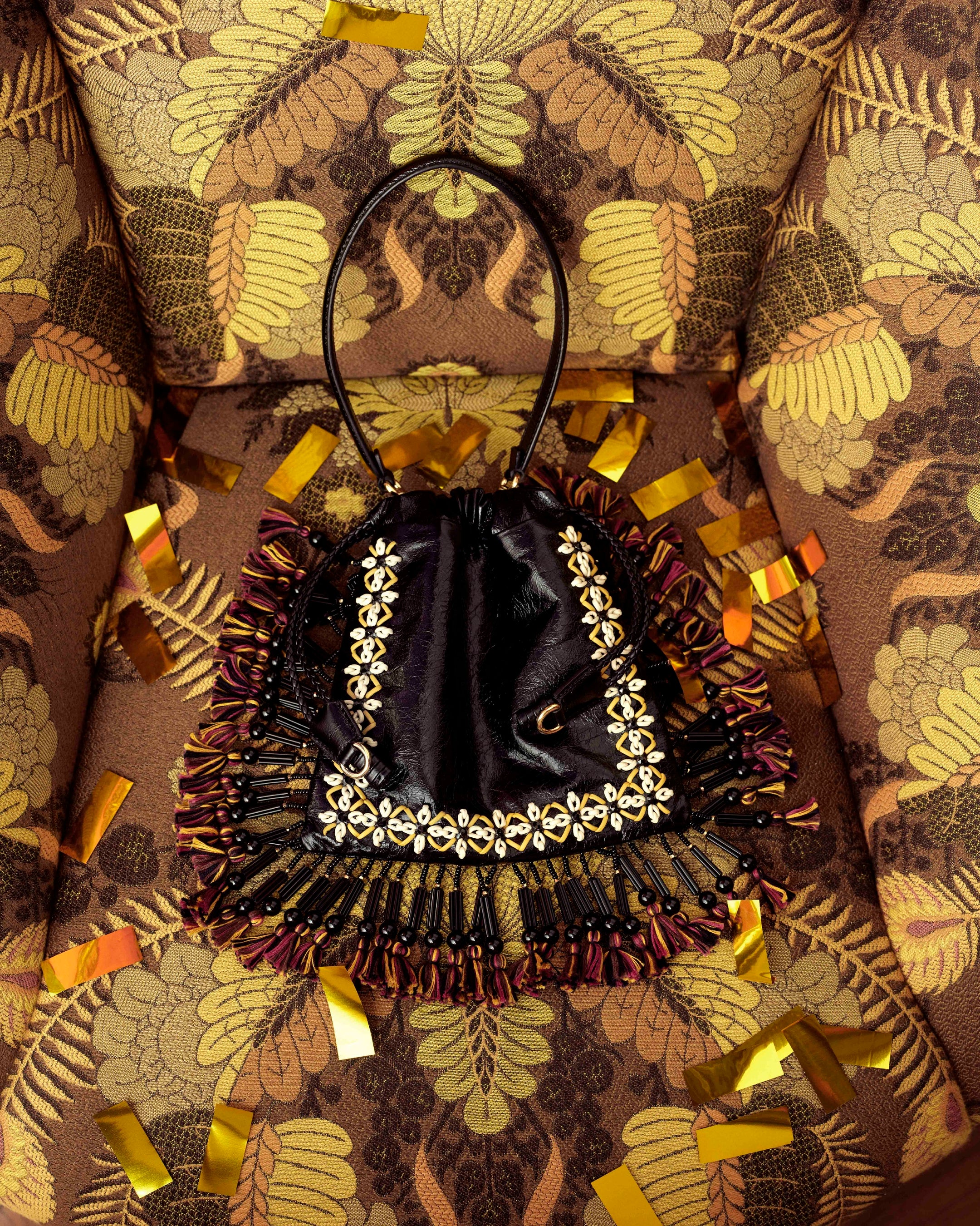 アクセサリーには、クラフツマンシップが光るユニークなアイテムが揃います。大ぶりスパンコールで飾られたアイコンバッグ「ヴェラ」や、ビーズのフリンジと編み込みディテールが印象的な「カリスペラ 」など、ホリデーにふさわしいバッグがラインナップ。