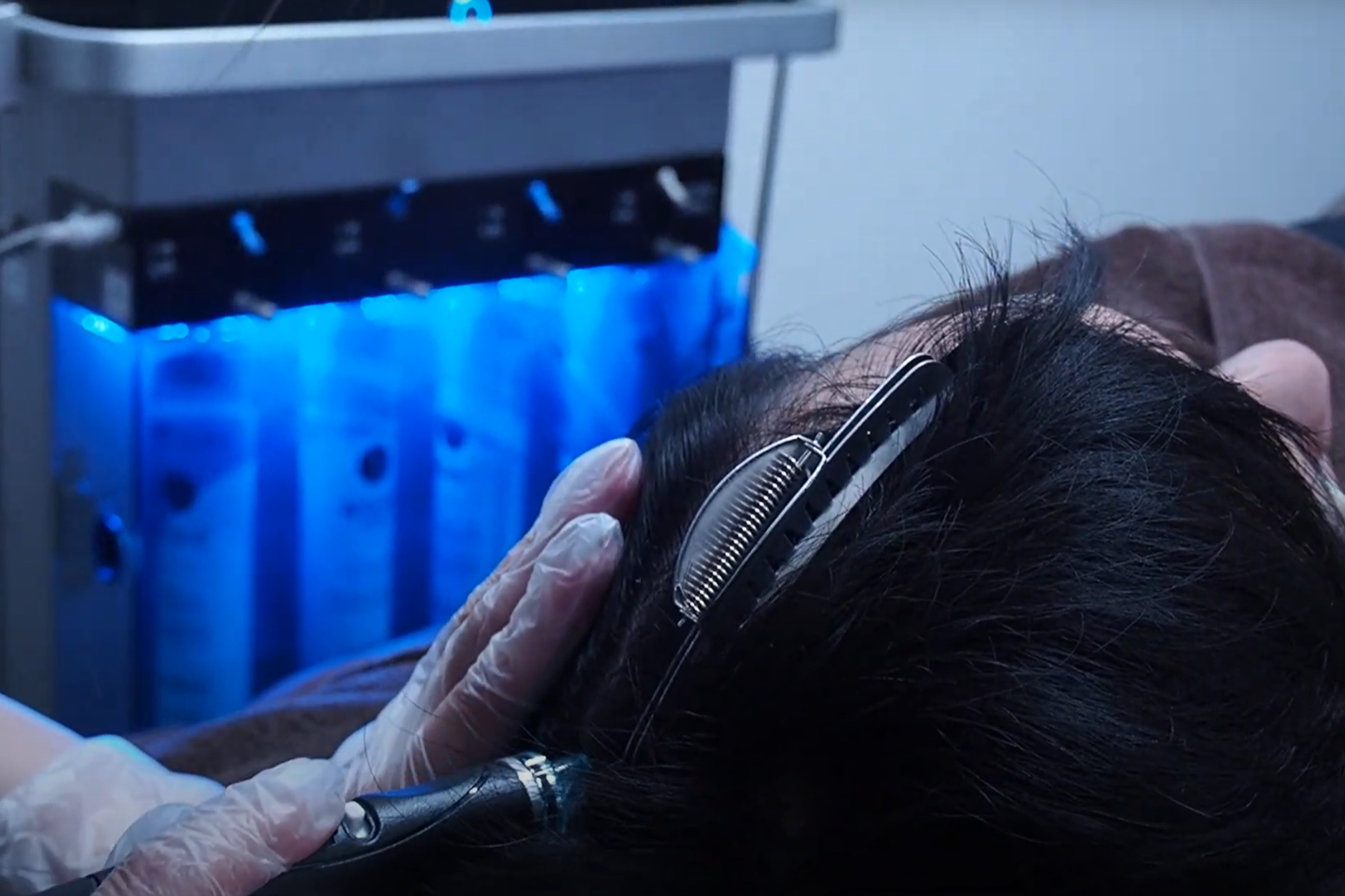 国内で唯一、アメリカFDA(※2)に発毛効果が認められた最先端のAGAレーザー治療。頭皮表面を傷つけることなく毛包を直接刺激する最新の低侵襲レーザー技術を採用。これにより内服薬や外用薬を使用せず安全かつ高い発毛効果を実現。従来の治療法から副作用リスクを大幅に軽減、頭皮へ直接アプローチすることで発毛を促進します。