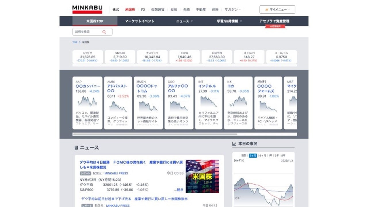 資産形成情報メディア「MINKABU」の米国株分野サービス開始のお知らせ