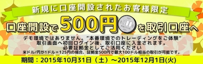 期間中に口座開設が完了し、初回ログインが完了したお客様全員に500円をご入金いたします。