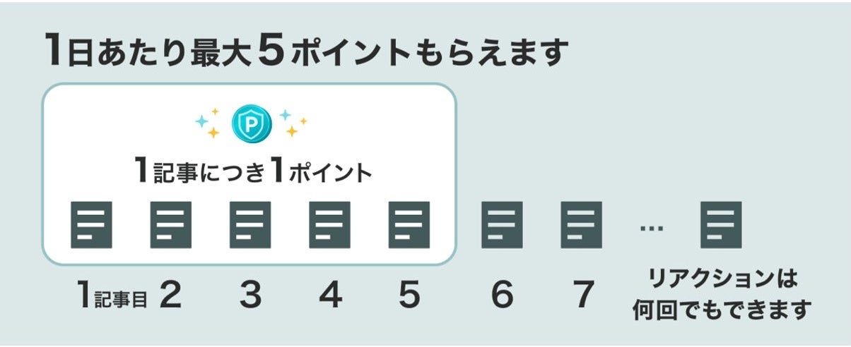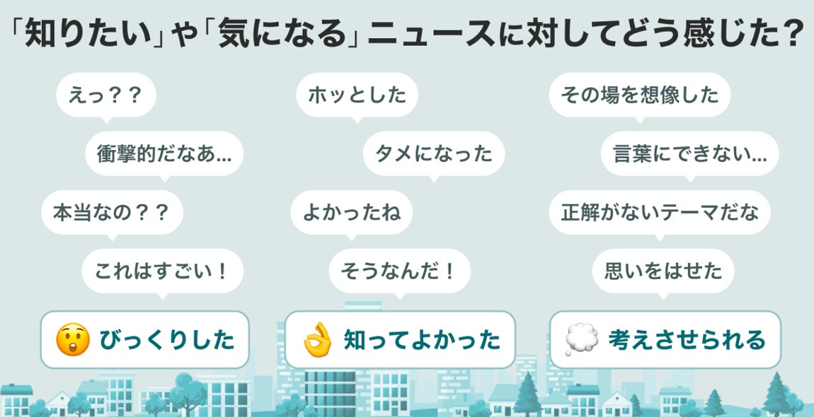 ニュースを最後まで読み、自分の感想に一番近いボタンを押して、リアクションいただくだけで、日々の買い物などで使えるポイントが貯まります。リアクションは「びっくりした」「知ってよかった」「考えさせられる」の3種類です。