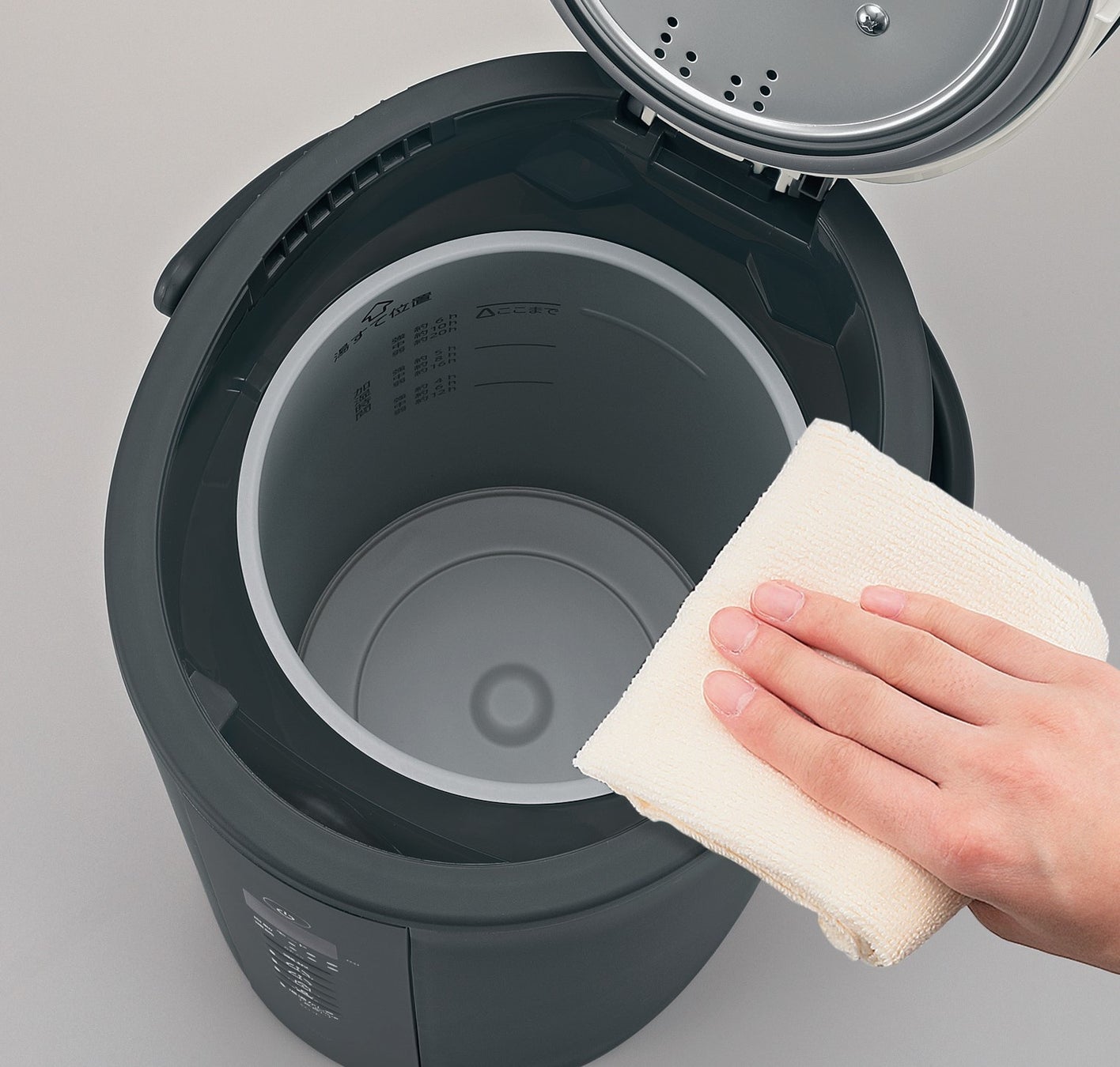 フィルターがなく、さらにフッ素加工の広口容器で汚れがつきにくいため、お手入れが簡単です。容器が広