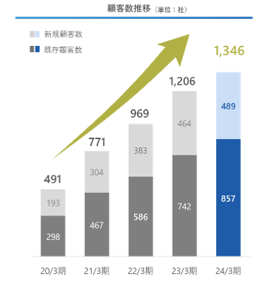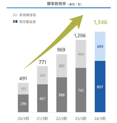 今回の資本業務提携は、当社の成長にとって重要な指標としている取引顧客数を増加させる機会になると期待しております。 GSX顧客数推移は2020年3月期~2024年3月期の集計期間において順調に数値を伸ばしており、2024年3月期の事業年度においては1,346社を数えております。ここにMIHグループのお客様層が加わる事によって更に大きく躍進させる事が可能になると考えております。
