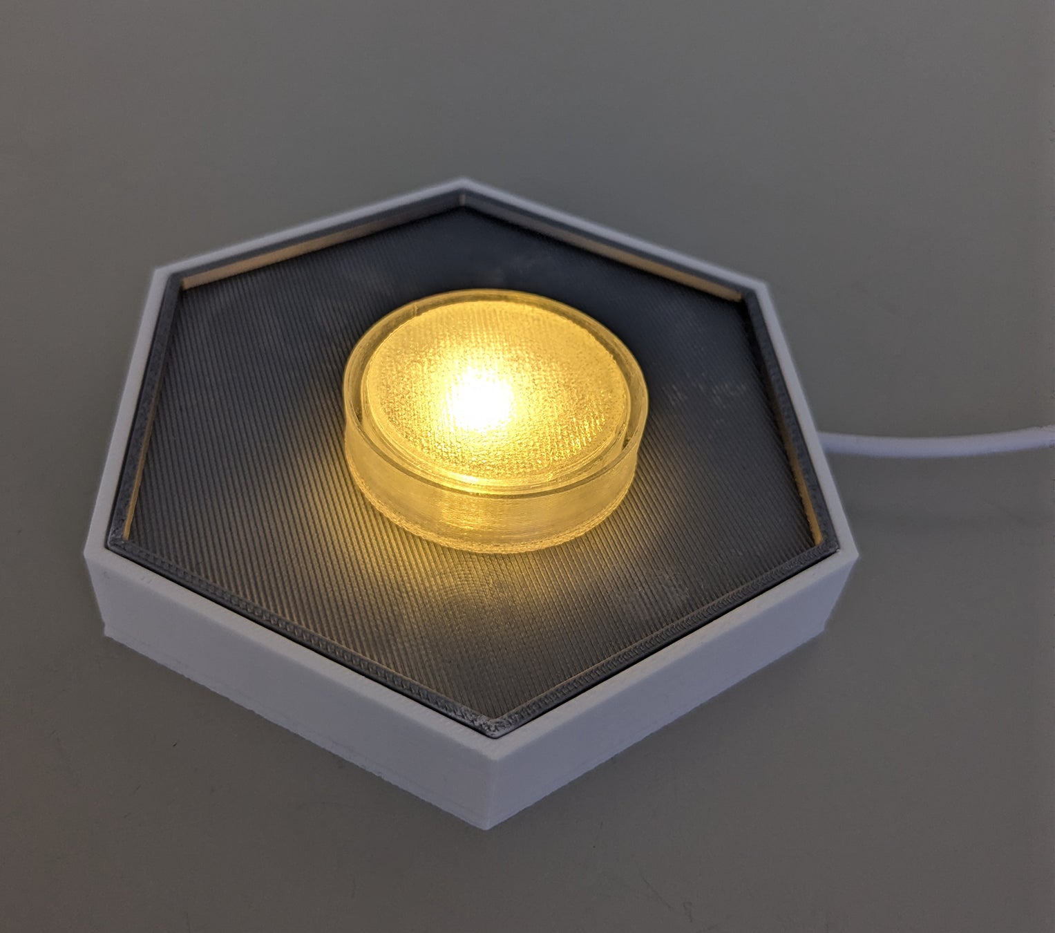 台座に送電コイル、ランプには受電コイルが入っていて、非接触で電気を送り点灯させています。