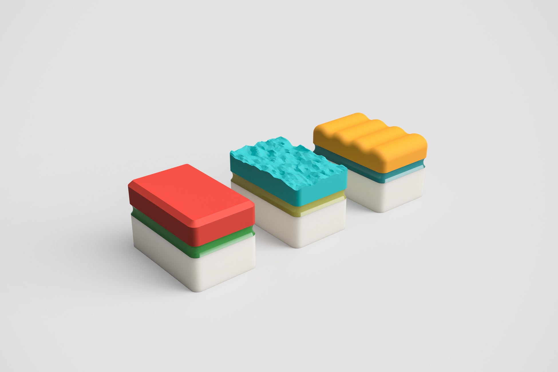 寿司デバイスはカノーブルが過去に発売した「VRバター」のコンセプトを踏襲し、VR映像を楽しみながら口溶けの変化を楽しむことも可能です。そのため、ネタのフレーバーによって違った口溶けをコントロールするため、フラット(写真左)、ポリゴンウエーブ(写真中)、ソフトマシュマロ(写真右)などの表面加工を加えています。