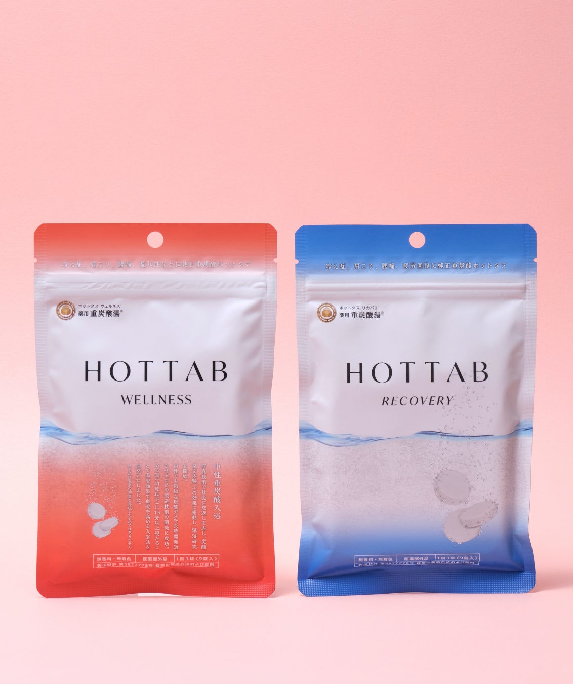 ホットタブは、自然炭酸泉 (療養泉) に着目して生まれた、中性重炭酸イオン入浴剤。ブランドのシグネチャーアイテム「ホットタブ ウェルネス」は、毎日の入浴に使うことで体温アップや、副交感神経が優位に働き、心身のリフレッシュ効果が期待できます。「ホットタブ リカバリー」は身体の疲労を効率的に回復させるアスリートライン。運動習慣のある方や、セルフコンディショニングをしたい方におすすめです。筋肉疲労を翌日に持ち越したくないときに、試してみてください。6月ボックスでは、3回分を2種類 (計6回分)お楽しみいただけます。
