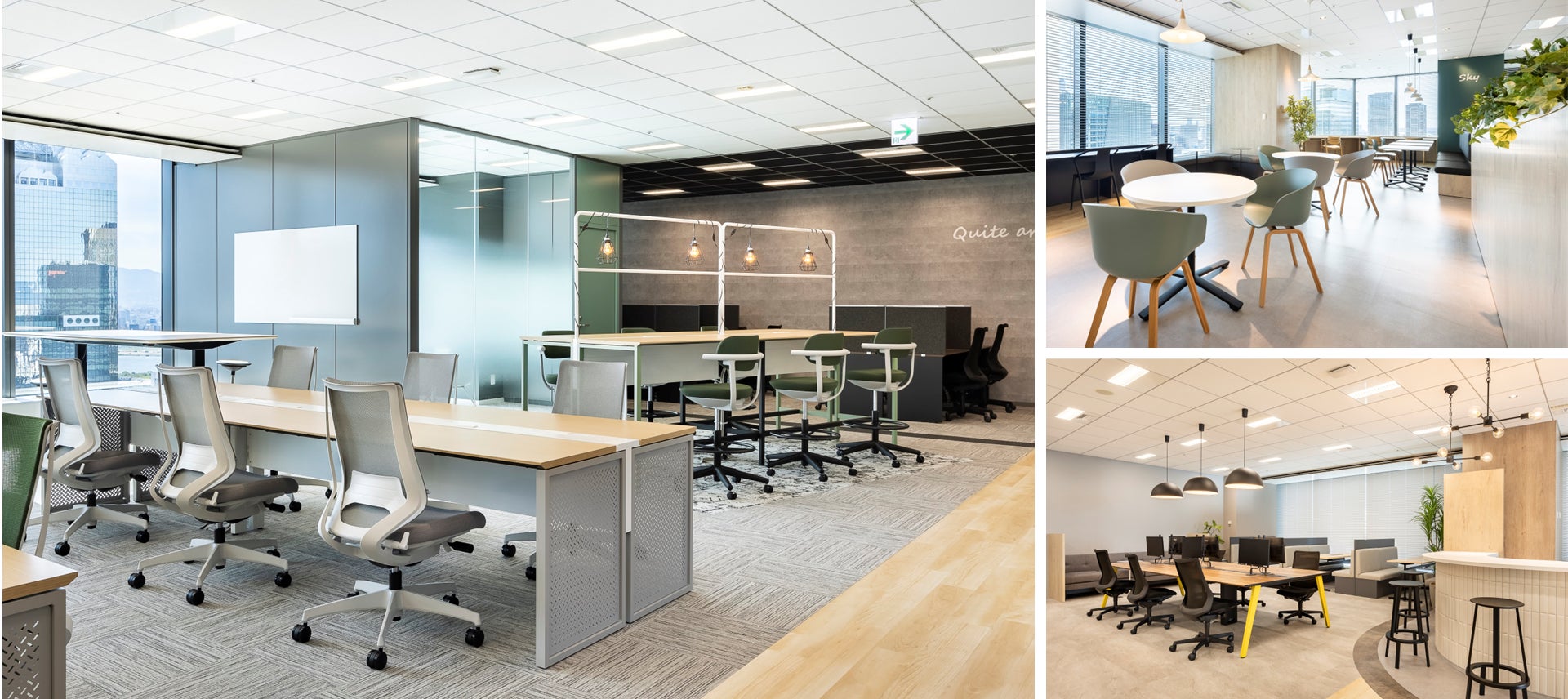 フリーアドレスで昇降型デスクや個室ブース、集中用スペースなど設備も充実し、多様な働き方が可能です。