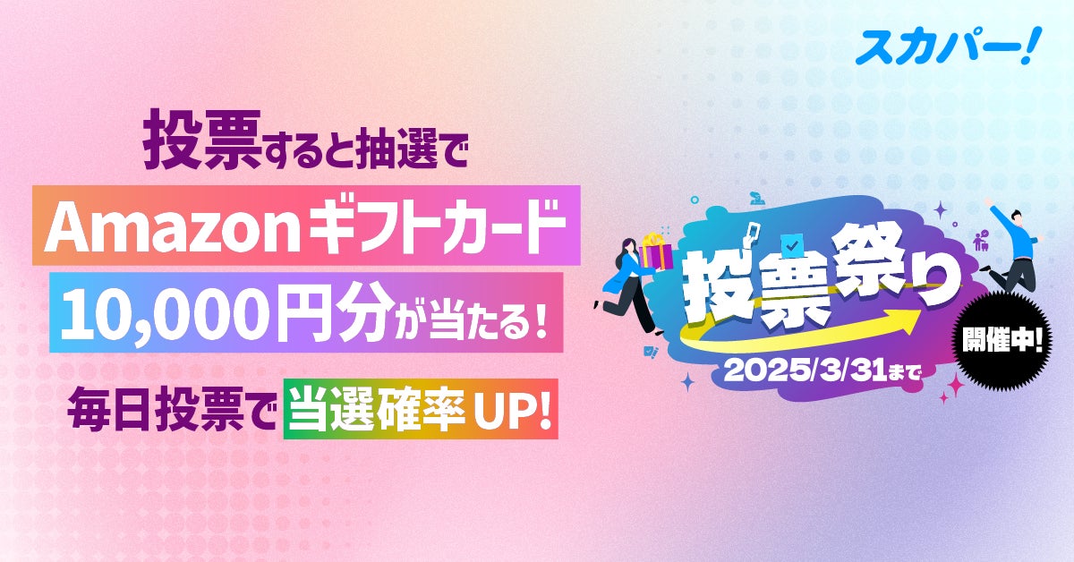 スカパー! では2025年3月31日(月)まで、特別企画「スカパー! 投票祭り」を開催中です。「スカパー! 投票祭り」では、様々な放送・配信コンテンツやイベントに関わる『投票』を実施しており、投票いただいた方には抽選で1万円のAmazonギフトカードをプレゼントいたします。