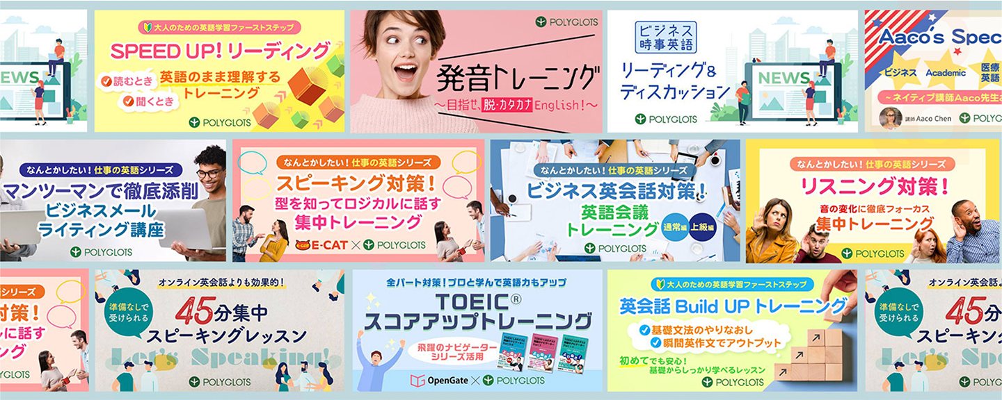 POLYGLOTSTeacherはTOEIC®900点相当の厳しい基準をクリアした講師のみを認定しています。講師のバックグラウンドは海外在住で日々英語を使って生活している講師や日本で独学で学んできた講師、現役CA、商社、旅行関連など、多種多様。ビジネスシーンで英語を使って活躍している「あなたの先輩」です。日本語で会話ができるからこそ、英語学習の悩みやネイティブとの会話でのアドバイスなど「語学」としての英語学習を超えたレッスンが可能!初心者から安心してご参加いただけます。