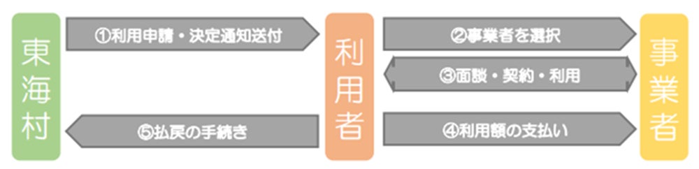 ⑤サポート終了後、利用者から東海村へ払い戻しの手続き