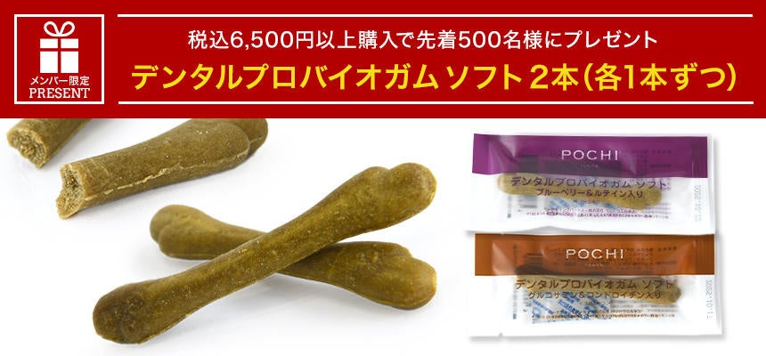 発売記念キャンペーンを5月31日(金)18時より開催します。POCHIで税込6,500円以上ご購入された先着500名様に「POCHI デンタルプロバイオガム ソフト」2種をプレゼントいたします。