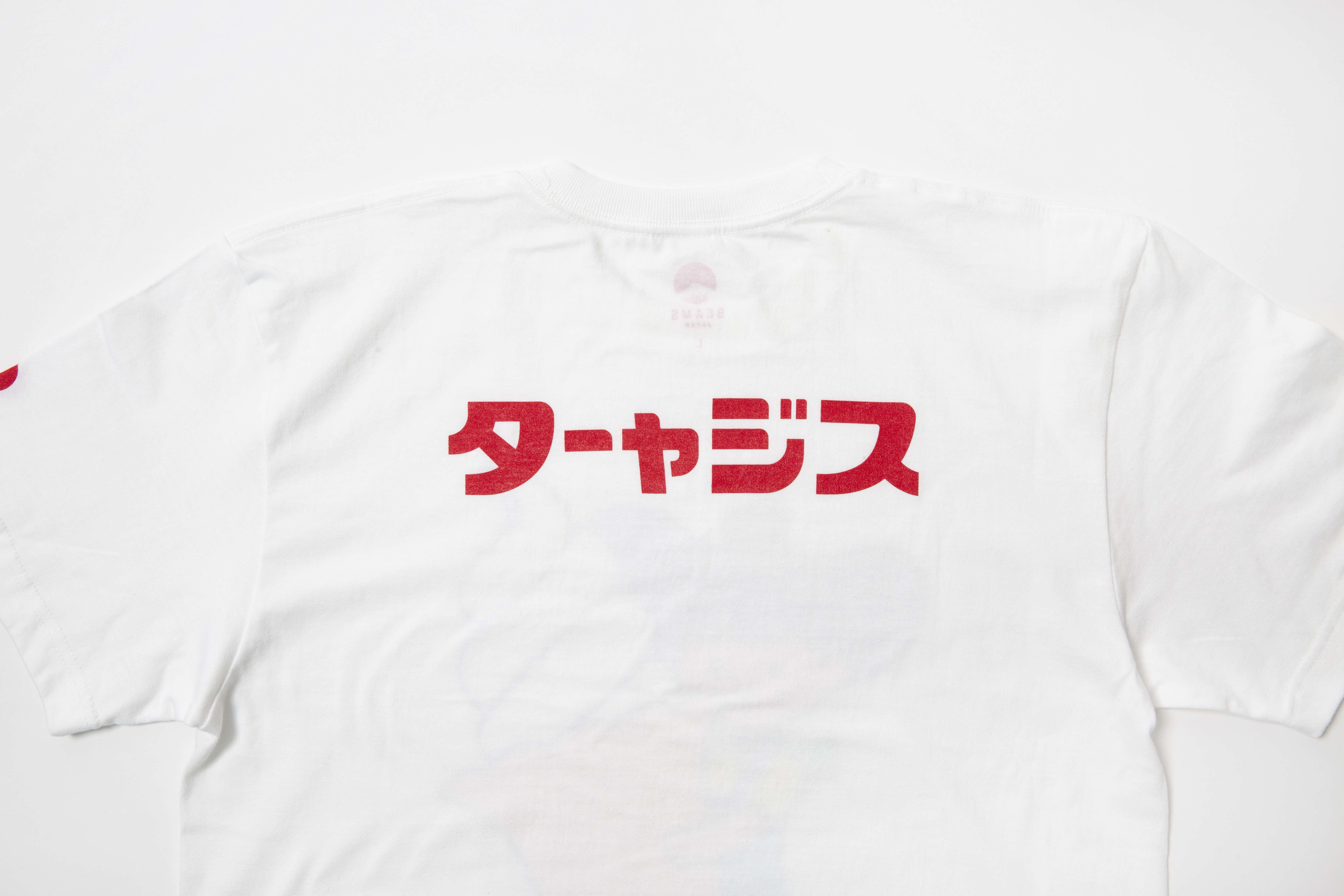スジャータのイメージキャラクターである「スジャータ坊や」。現在メインで使用されている3Dのキャラクターではなく、1980年代半ばに誕生した当時のままの、どこか懐かしさを感じさせる2Dイラストを採用しました。バックプリントには全国を走るトラックの右側面に表記されてきた文字列「ターャジス」をプリント。