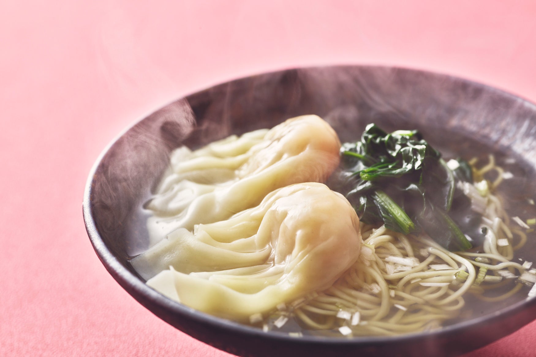 前菜は秋の恵みの代表格2品から。サクッと香ばしい、四川スパイスが食欲をそそる舞茸ときのこの揚げ物と、近年希少となってきている秋刀魚をさっぱりと南蛮漬けに。メインには贅沢に活け蝦夷鮑を丸ごと大胆に、なめらかに仕上げたマロンクリームソースをからめて。丁寧に仕込まれた上質で、滋味深い上湯スープに、帆立、イカ、海老のぷりぷりのワンタンがたまらない中華そばは、ボリュームたっぷりで大満足の逸品です。